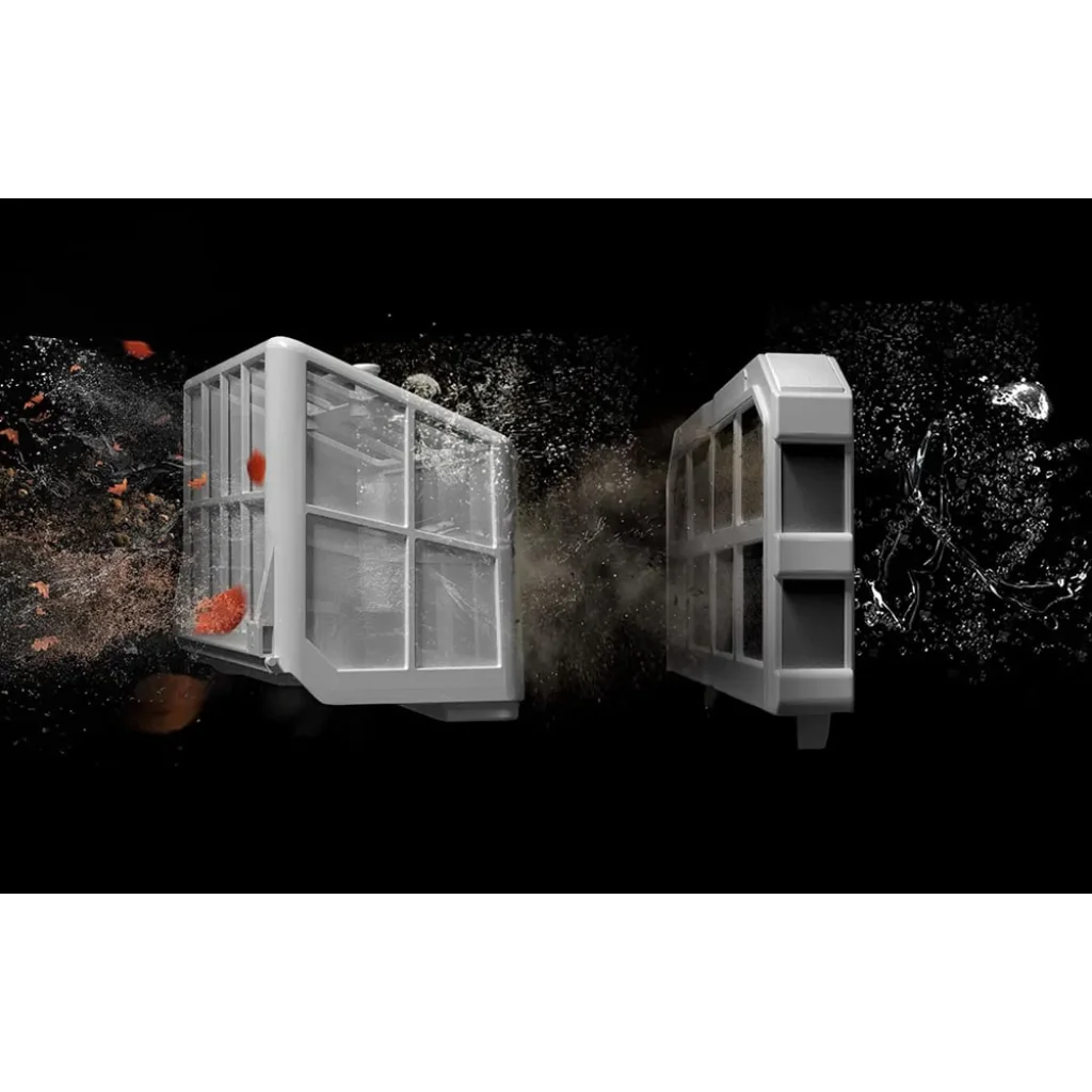Az alkalmazott 3D adszorpciós rendszer egy 180 μm-es precíziós szűrőkosarat kombinál egy ultrafinom, 40 ppi-s szivaccsal. Ez a kialakítás lehetővé teszi a homok, levelek, gallyak, haj, por, kavicsok vagy algák hatékony felfogását. A kettős szűrés nagyfokú víztisztaságot tesz lehetővé.