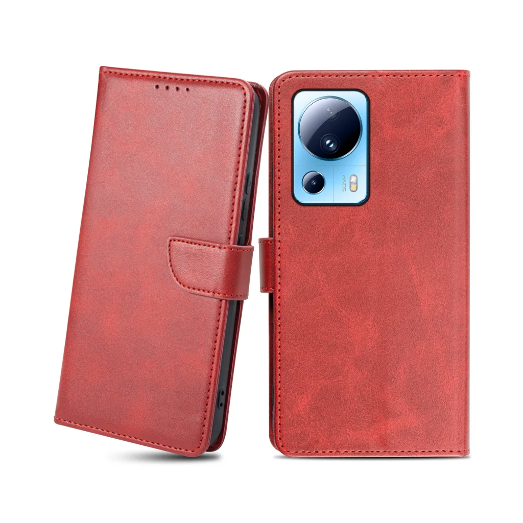 Xiaomi 13 Lite mágneses PU bőr fliptok kártyatartóval piros Alphajack