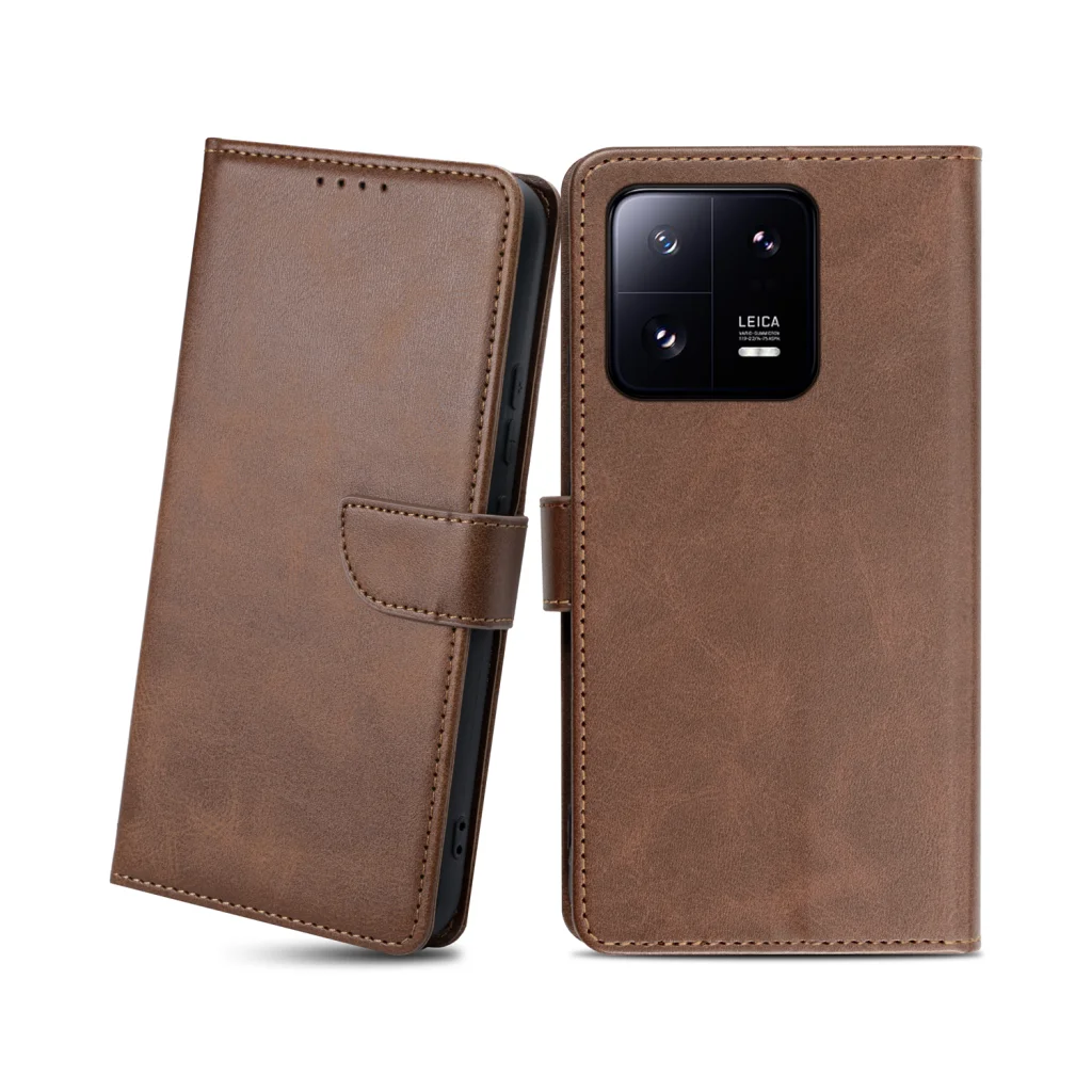 Xiaomi 13 Pro mágneses PU bőr fliptok kártyatartóval sötétbarna Alphajack