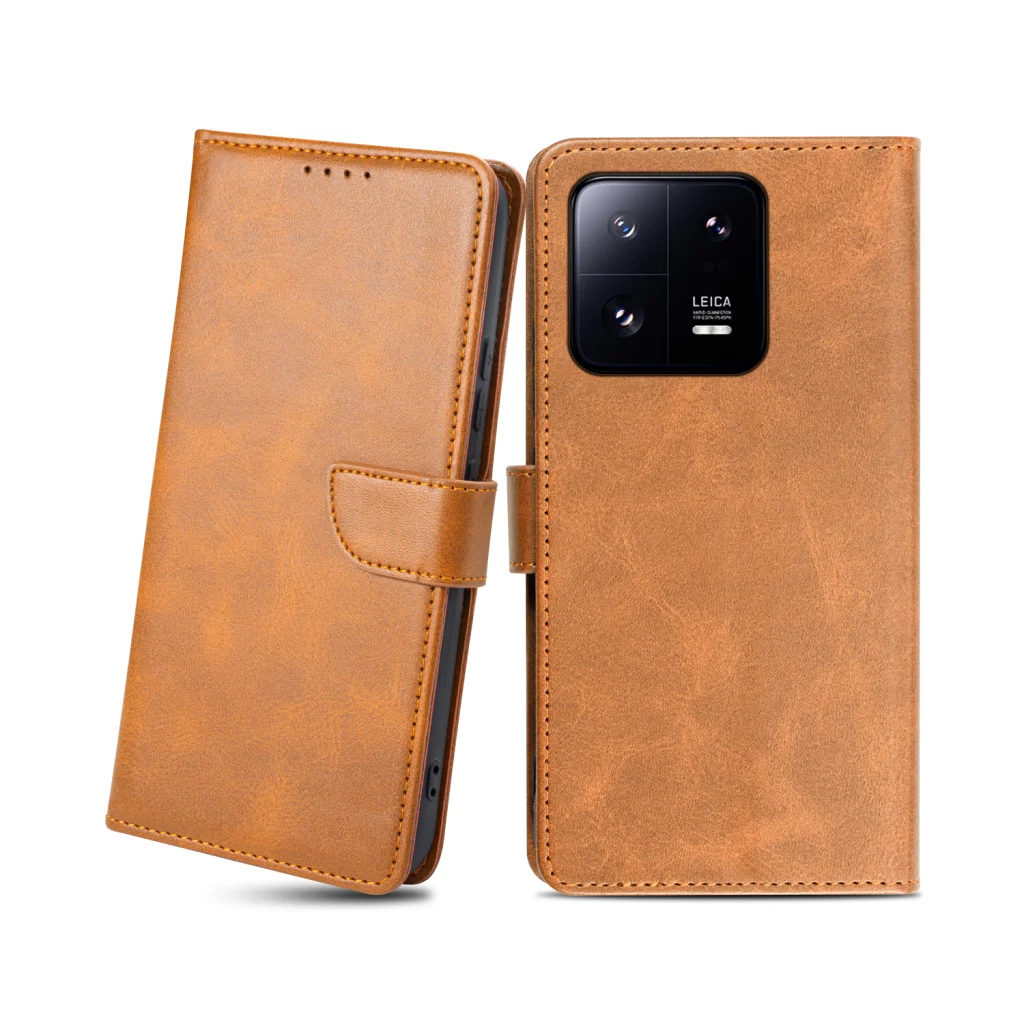 Xiaomi 13 Pro mágneses PU bőr fliptok kártyatartóval világosbarna Alphajack