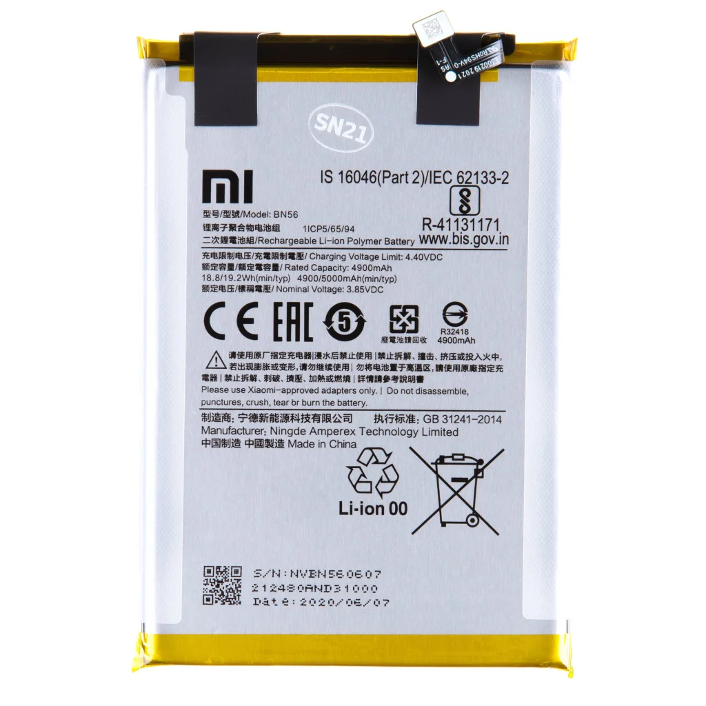 Eredeti, gyári Xiaomi 5000mAh kapacitású akkumulátor, Xiaomi Redmi 9C, Redmi 9A modellekhez kompatibilis. OEM jellegű csomagolásban.