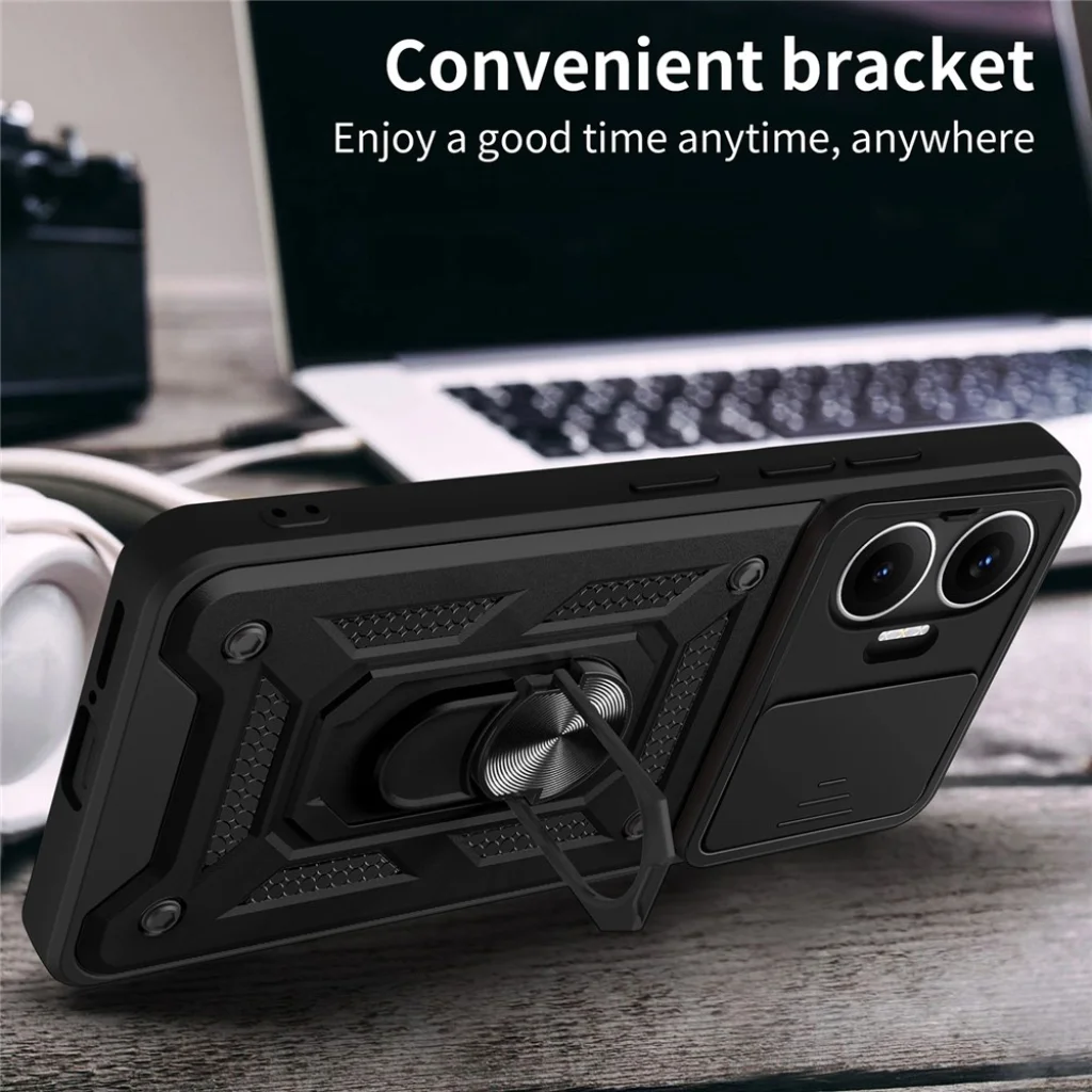 - Beépített kameralencse védelem (PC Push Window): A tok hátoldalán található precízen illeszkedő, eltolható fedél segítségével könnyedén elrejtheted és védheted a Xiaomi Poco F7 érzékeny kamerarendszerét a karcolásoktól és a portól, amikor nem használod. Ez nemcsak fizikai védelmet nyújt, hanem növeli a magánéleted biztonságát is.