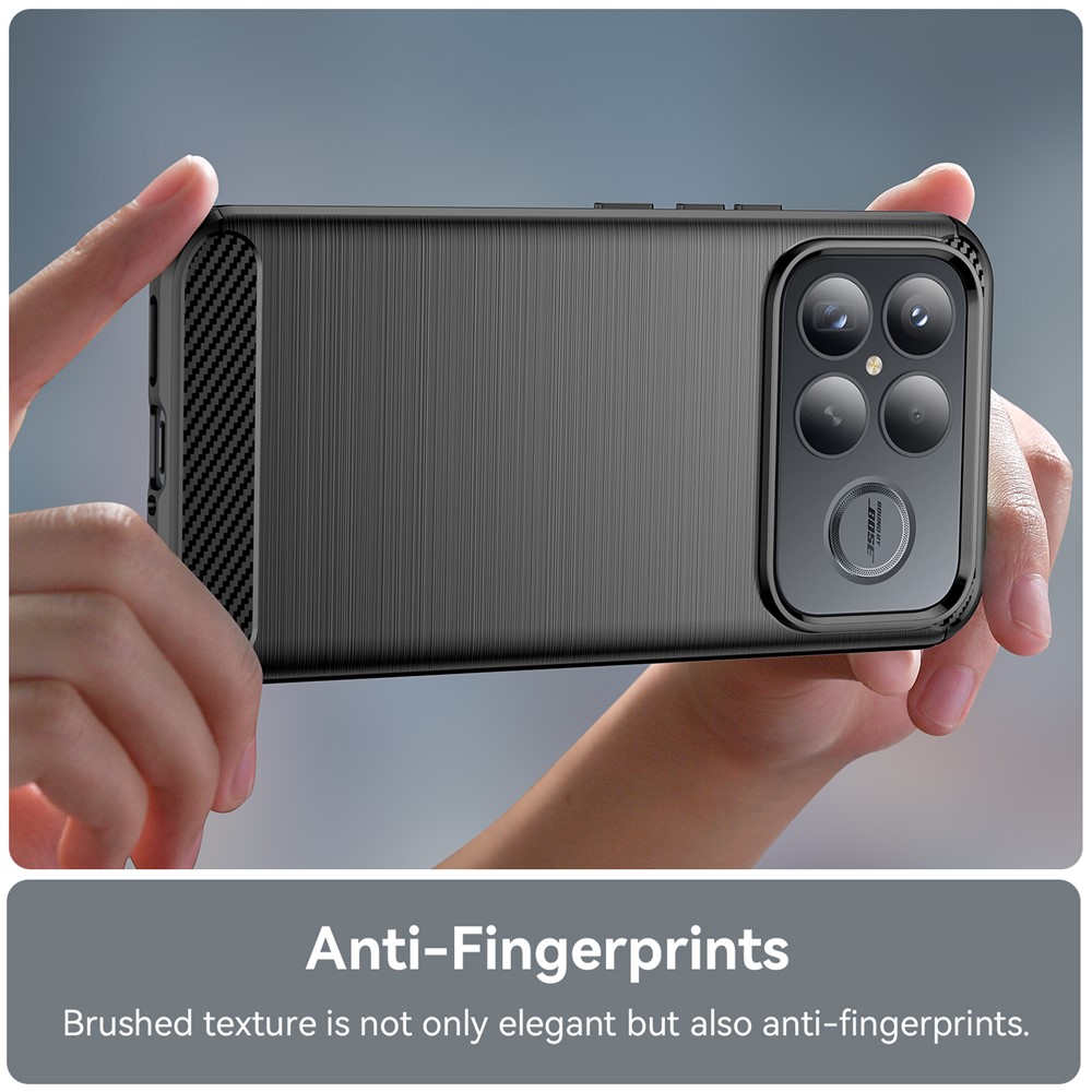A tok kiváló minőségű TPU (termoplasztikus poliuretán) anyagból készült, amely rugalmasságával és tartósságával ideális védelmet nyújt a mindennapi ütések és karcolások ellen. A hátlapon található szálcsiszolt textúra nemcsak stílusos és modern, hanem hatékonyan gátolja az ujjlenyomatok megmaradását is, így telefonod mindig makulátlanul néz ki. Az alsó és felső részen elhelyezett elegáns szénszálas mintázat egyedi, sportos kiegészítője a tok megjelenésének, kiemelve a készülék prémium érzetét.