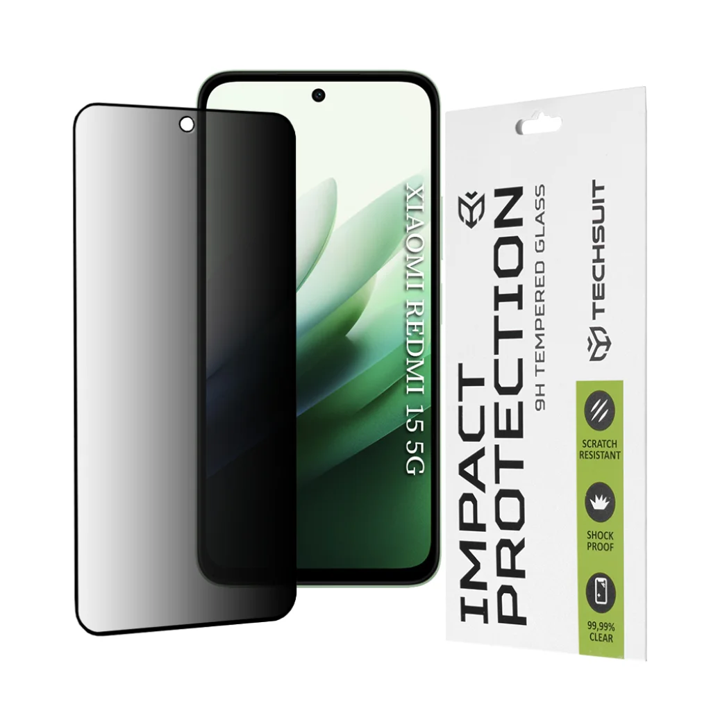A Xiaomi Redmi 15 4G és Redmi 15 5G készülékekhez tervezett Techsuit 111D Privacy Full Glue fekete üvegfólia nem csupán kiváló védelmet biztosít telefonja kijelzőjének, hanem garantálja a személyes adatok biztonságát is a kíváncsi tekintetek elől.