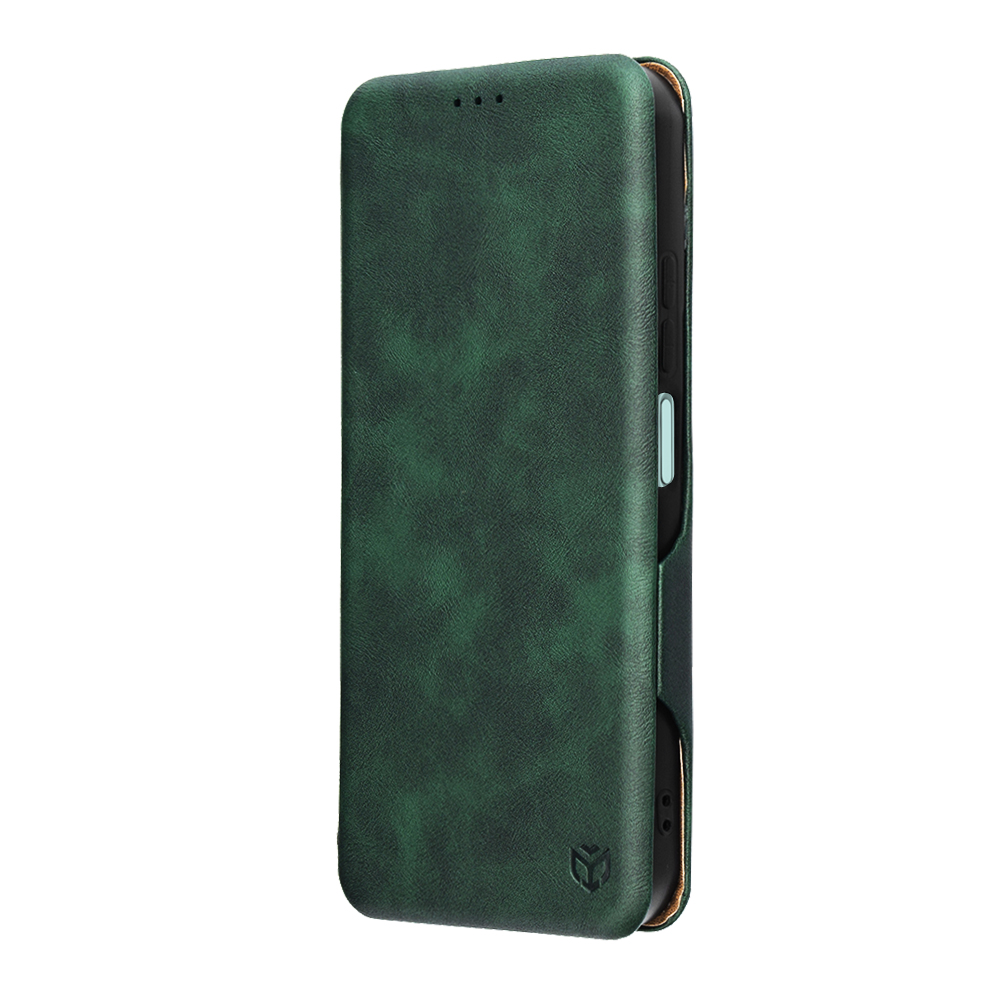 - Elegáns zöld design: Az egyedi, patinás hatású eco-bőr anyag és a mélyzöld árnyalat kifinomult és exkluzív megjelenést kölcsönöz készülékének.
