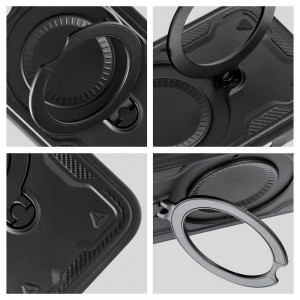 Az erősített szerkezetű és praktikus, kihúzható állvánnyal ellátott tok egy szilárd megoldás, amely tökéletesen működik a mindennapi használat során. A vezeték nélküli töltéssel való kompatibilitás és a kamera körüli emelt perem mindkét kényelmet és védelmet nyújt. Az erősített Armor típusú konstrukció hatékonyan védi az eszközt, és a két anyagból készült szerkezet tovább növeli a tartósságot. A puha TPU oldalak tökéletesen illeszkednek a telefonhoz, míg a kemény PC hátlap jobb védelmet nyújt az eszköz hátsó részének esés esetén. A tokba rejtett gyűrű stabil állványként funkcionál, lehetővé téve a telefon vízszintes elhelyezését - kiváló megoldás filmek vagy fényképek nézése során. Összecsukva a gyűrű illeszkedik a tokba, anélkül hogy zavarná a töltést vagy az eszköz használatát. A kamera körüli emelt perem további védelmi gátat biztosít a lencsék számára, lehetővé téve a telefon biztonságos lerakását anélkül, hogy a lencsék megkarcolódnának. A tok támogatja a vezeték nélküli töltést, lehetővé téve a töltést és a mágneses tartók használatát anélkül, hogy eltávolítaná a tokot.