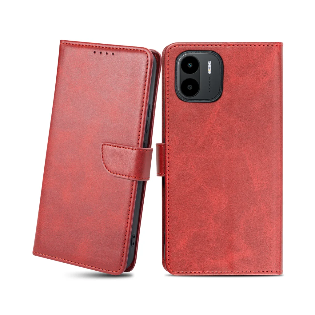 Xiaomi Redmi A1 mágneses PU bőr fliptok kártyatartóval piros Alphajack