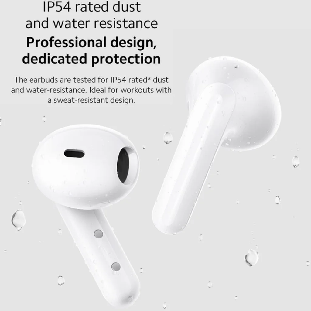 Az ergonomikus és könnyű Xiaomi Redmi Buds 4 Lite vezeték nélküli fülhallgatók kényelmes kiegészítők a mindennapi használathoz. Pontosan illeszkednek, így ideálisak a napi használathoz és fizikai tevékenységekhez egyaránt. Az IP54-es vízállósági szintnek köszönhetően a fülhallgatók víz- és porállóak, így gond nélkül használhatók edzőteremben vagy esős napon.