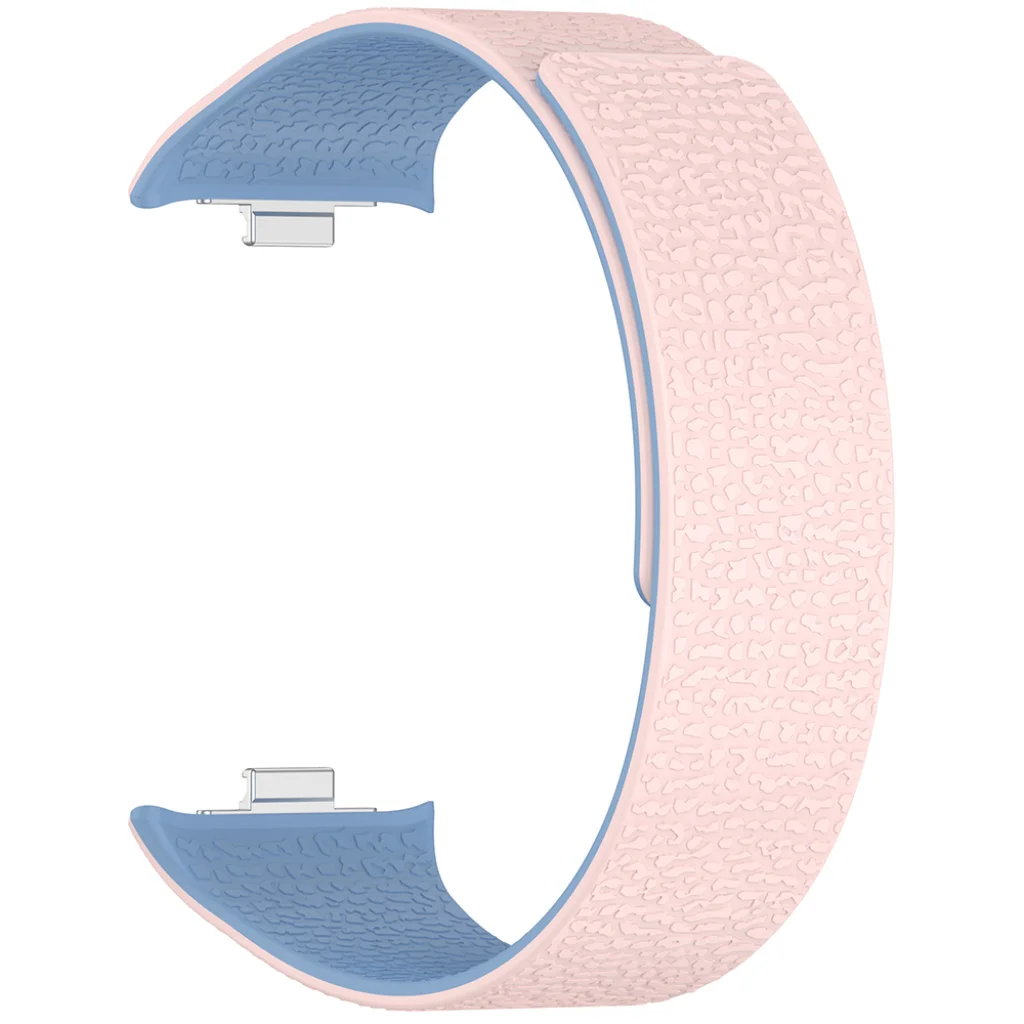 A tartós és rugalmas szilikon anyag kényelmes viseletet biztosít egész nap, még intenzív edzések vagy hosszú távú használat során is. Izzadság- és vízálló tulajdonságainak köszönhetően ideális választás sportoláshoz, mindennapi használatra, és még úszáshoz is. Az egyedi kéttónusú design – kívül elegáns rózsaszín, belül frissítő kék – modern és dinamikus megjelenést kölcsönöz órádnak. A finoman texturált felület nemcsak esztétikus, hanem kellemes tapintású is.