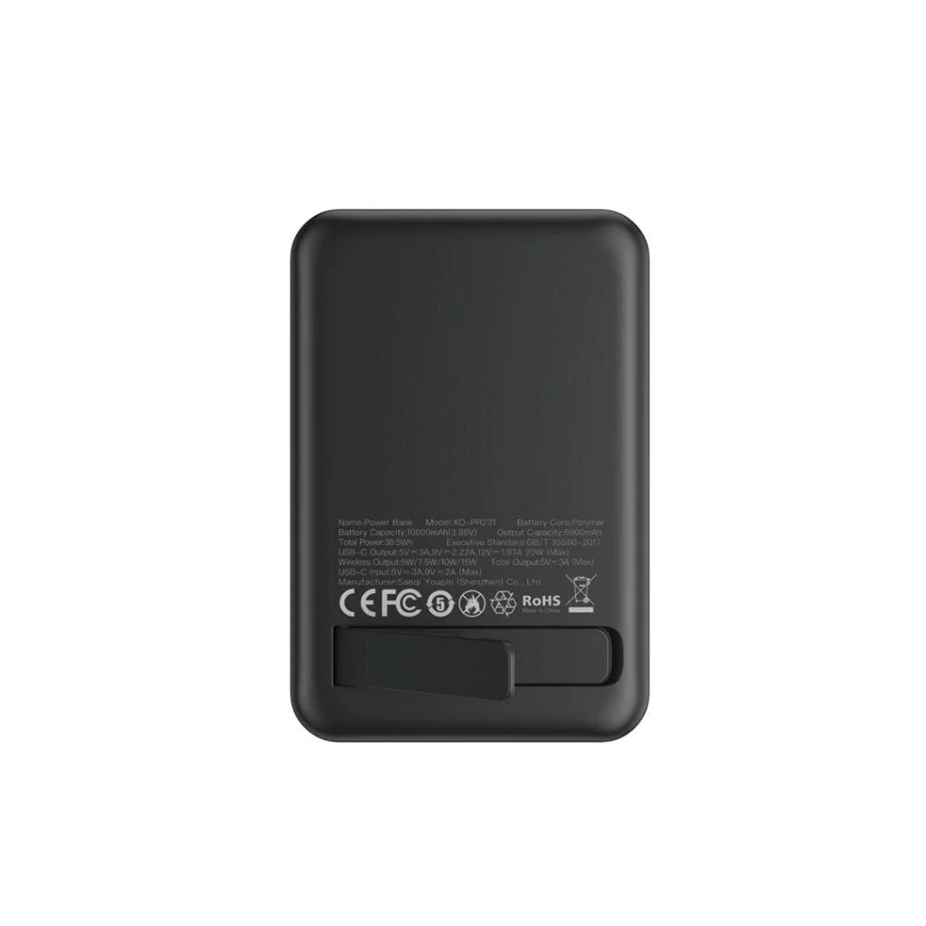 Bemutatjuk legújabb innovációnkat a hordozható energia megoldások terén, az XO mágneses 10000mAh power bankot. Ez a megbízható társad a töltéshez útközben. Elegáns ABS+PC konstrukciójának köszönhetően tartós és könnyű. USB-C bemeneti és kimeneti portokkal van felszerelve, támogatja a gyors töltést akár 18W bemenettel és 20W kimenettel. Ezenkívül élvezd a vezeték nélküli töltés kényelmét, amely támogatja az 5W, 7.5W, 10W és 15W kimeneti lehetőségeket. Az akkumulátor kijelzője praktikus fényjelzéssel rendelkezik, amely tájékoztat a teljesítmény állapotáról. Kis méreteivel kompakt és hordozható, könnyen elfér a táskádban vagy zsebedben. A támogatott protokollok közé tartozik a QC2.0, QC3.0, AFC, FCP, PD2.0 és PD3.0, biztosítva a széleskörű eszközökkel való kompatibilitást. Maradj feltöltve, bárhol is legyél az XO Power 10000mAh power bankkal.