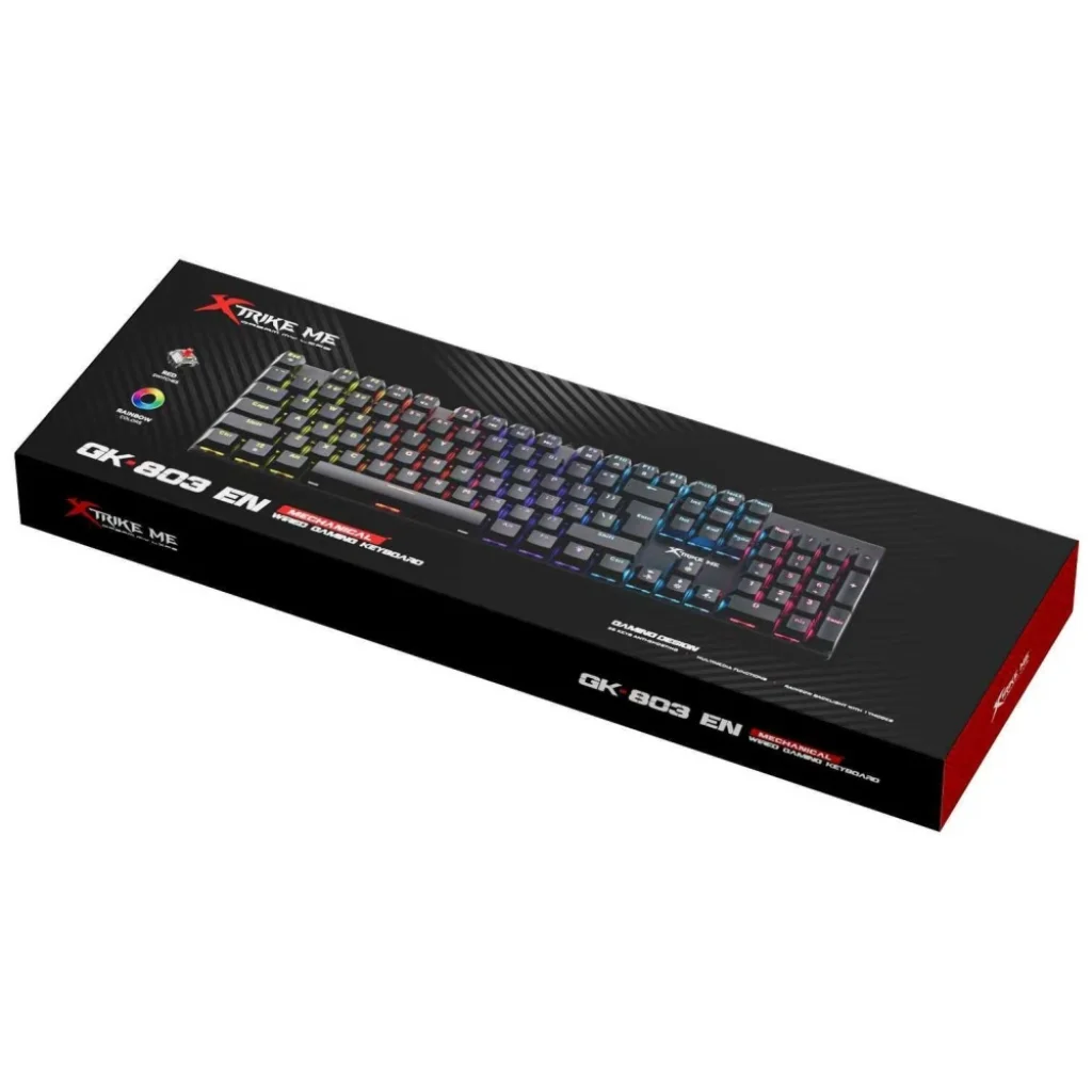 Az XTRIKE ME GK-803 EN billentyűzet dinamikus szivárvány típusú háttérvilágítással rendelkezik, többféle világítási móddal, amely modern és lenyűgöző megjelenést kölcsönöz a gamer setupnak. A színes megvilágítás nemcsak az esztétikát javítja, hanem sötét környezetben is könnyebbé teszi a billentyűzet használatát.