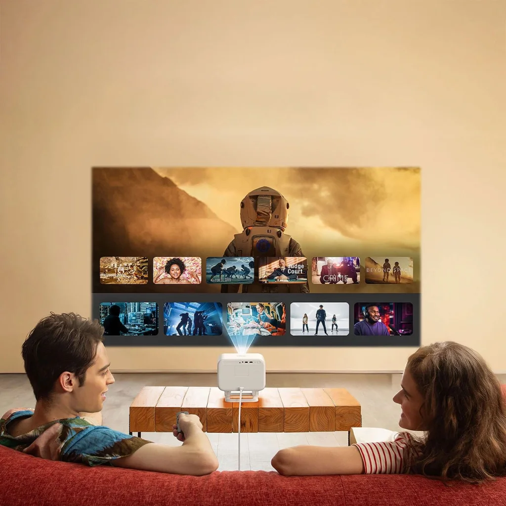 - Rugalmas telepítés: Forgatható, levehető állvány és 1.38:1-es vetítési arány lehetővé teszi a vetítést 40"-tól 150"-ig - asztalon, mennyezeten vagy bármi közte.