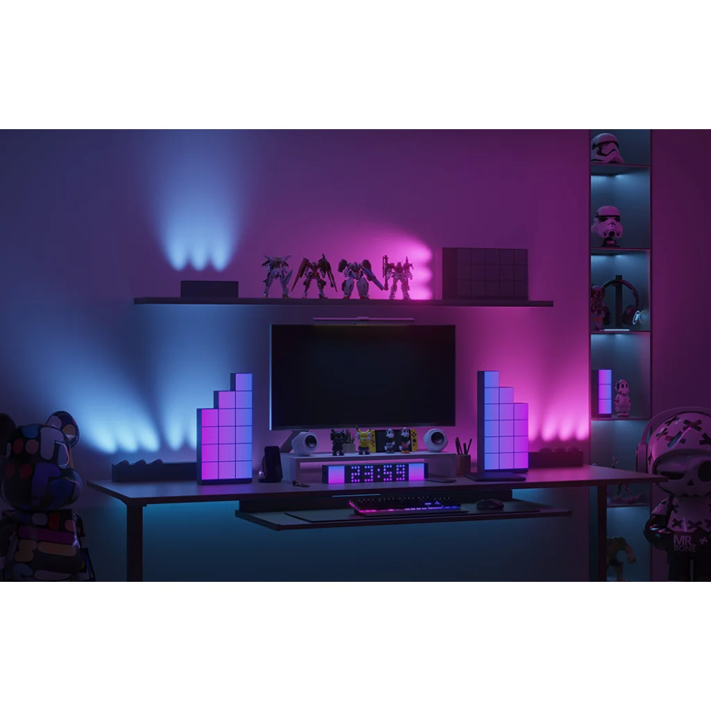 A Yeelight panelek szabadjára engedik a képzeletedet, mivel sok különböző fénykompozíciót hozhatsz létre velük. Amikor integrálod őket a Razer Chroma-val és az Overwolf-fal, valós időben igazodnak a képernyőn zajló hangulathoz és tevékenységekhez, így tökéletes hangulatot hoznak létre a játék során. Ezenkívül az ARGB kocka dinamikusan tükrözi a monitor színeit, és a kiemeléseket is megjeleníti a képernyőn kívül. A Yeelight panelekkel kedvenc dalaidat lenyűgöző fényshow-vá alakíthatod, mivel követik a zene ritmusát!