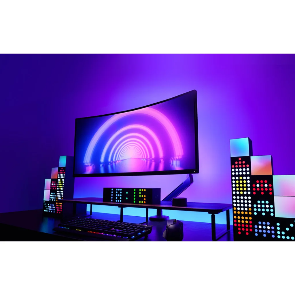 A Yeelight-tel megmozgatod a képzeleted! Szabadon kombinálhatod a paneleket egymással, hogy sokoldalú készleteket hozz létre. Egyetlen bázison akár 6 panelt is elhelyezhetsz, így a világítási játék soha nem ér véget! A Smart Cube Light Matrix képes emojikat, betűket és számos más érdekes elemet megjeleníteni! Ezenkívül könnyedén kialakíthatsz belőle egy órát. A Yeelight-tel több, mint egyszerű fényeket szerezhetsz be – személyre szabhatod a szobádat velük!