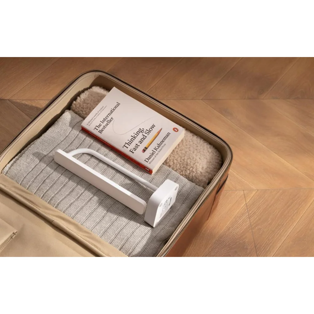 Ideális otthoni és utazáshoz A könnyű (280 g) és összecsukható kialakításnak köszönhetően a Yeelight Jasmine akár kézipoggyászban is elfér. Összehajtogatva mindössze 26 × 8,5 cm-es, így ideális lesz utazásokhoz. Kisebb íróasztalokon vagy asztalokon is jól használható.