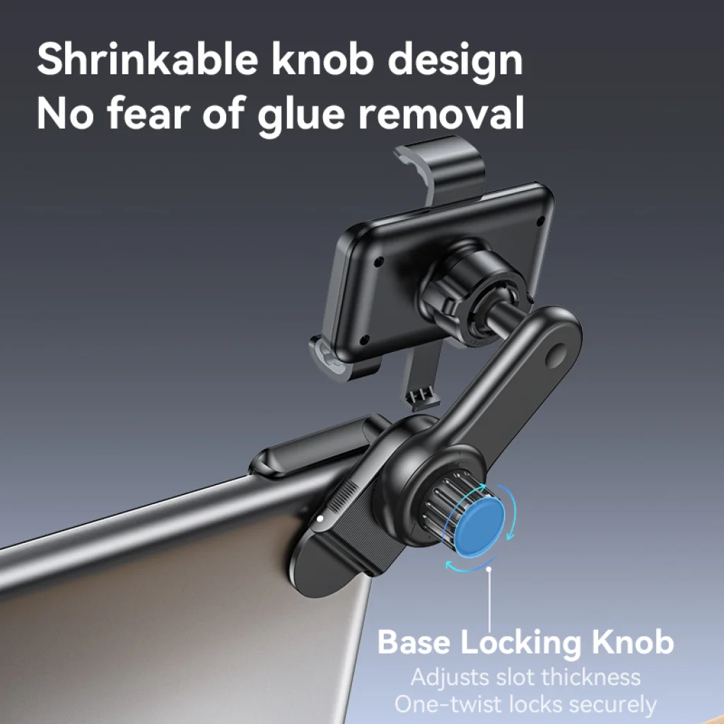 - Teljes 360°-os elforgatás: A tartó dupla 360°-os forgathatóságot kínál – egyrészt a telefontartó fejen, másrészt a rögzítőalapon (swivel base). Ez páratlan rugalmasságot biztosít: állítsa be a telefont a tökéletes betekintési szögbe, legyen az függőleges vagy vízszintes pozíció, navigációhoz, zenehallgatáshoz vagy hívásokhoz.