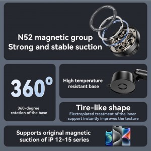 A beépített N52 mágnesek rendkívül erősen és stabilan tartják telefonodat, garantálva, hogy a legrosszabb úton is a helyén maradjon. Kifejezetten támogatja az iPhone 12-15 széria eredeti mágneses rögzítését, de kompatibilis minden 4.7-7.2 hüvelykes telefonnal.