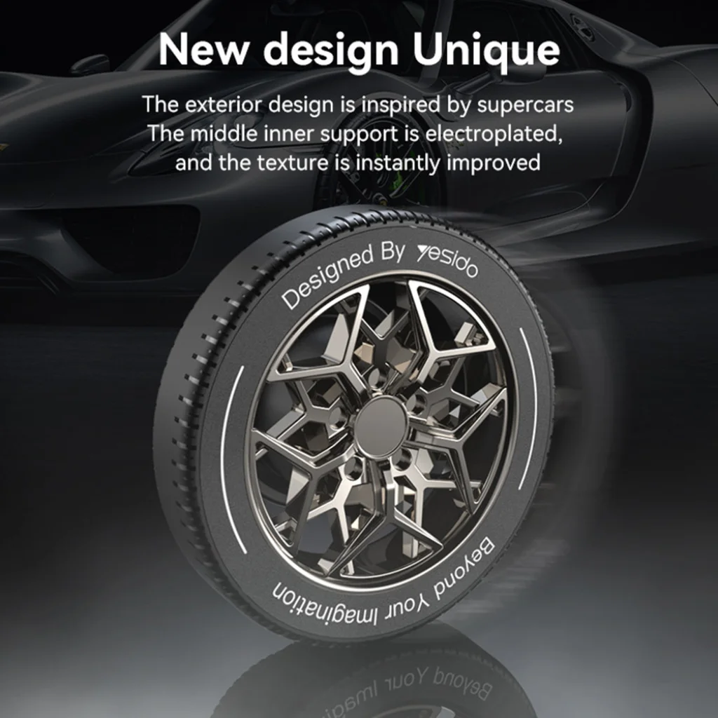 Merülj el a Yesido C266 különleges, szuperautók által inspirált megjelenésében! A tartó mágneses feje egyedi gumiabroncs formát ölt, amely nem csak stílusos, de a belső, galvanizált tartórésznek köszönhetően extra prémium tapintást is kölcsönöz. Ez a "Designed By Yesido" és "Beyond Your Imagination" feliratokkal díszített kialakítás garantáltan feldobja autód belső terét.