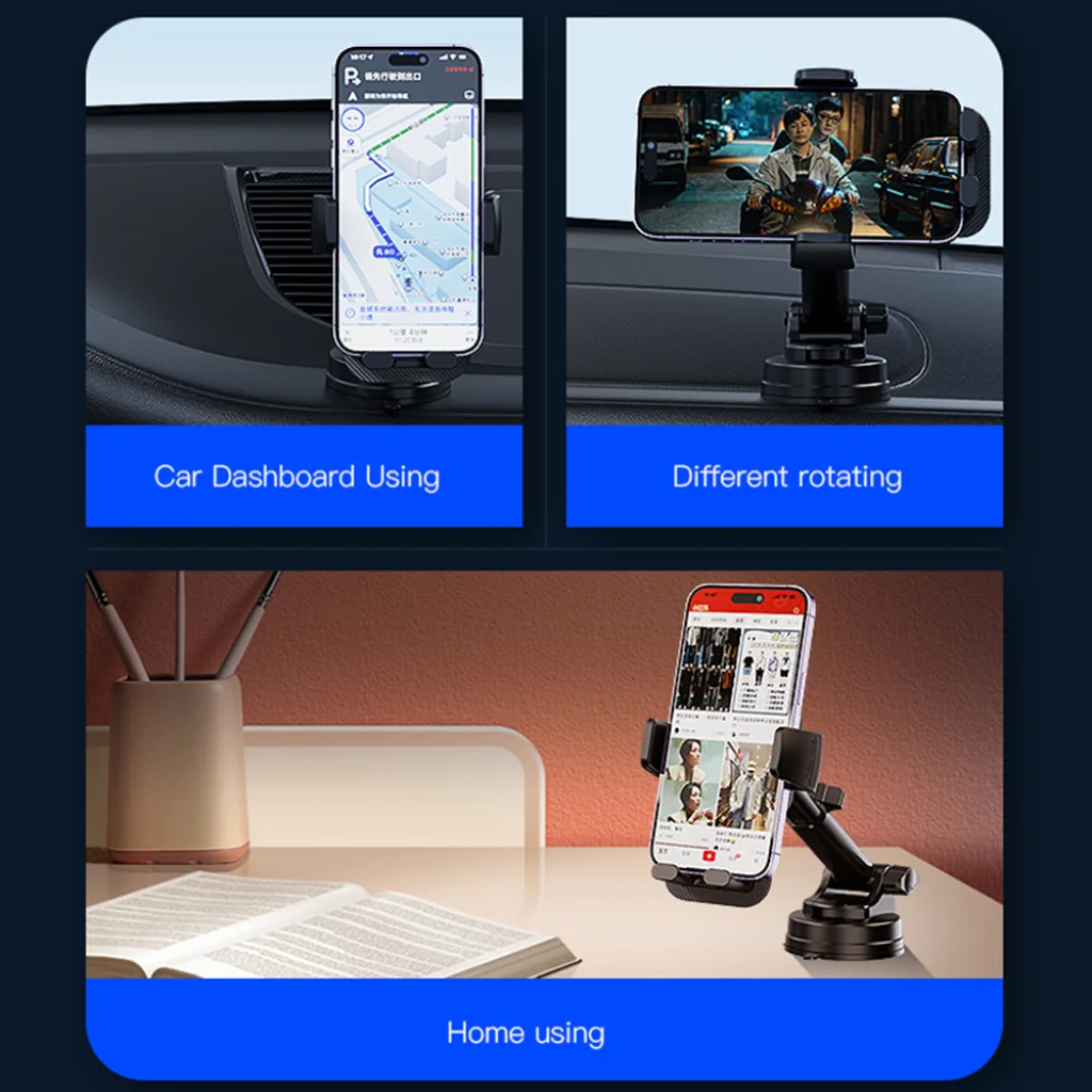 - Univerzális rögzítés: Az erős tapadókorong lehetővé teszi a tartó stabil és biztonságos elhelyezését az autó szélvédőjén vagy műszerfalán. Akár sima, akár enyhén texturált felületre is rögzíthető, biztosítva a megbízható tartást még rázósabb utakon is.
