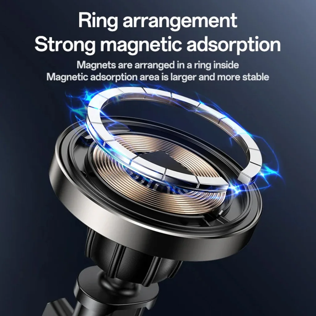 - Erős mágneses adszorpció: A belsőleg, gyűrű alakban elrendezett mágnesek stabil és erőteljes tapadást biztosítanak. A megnövelt mágneses adszorpciós terület garantálja telefonja biztonságos tartását még rázós útfelületen vagy hirtelen fékezéskor is.