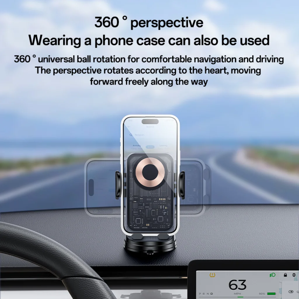 Élvezze a 360°-os univerzális gömbcsuklós elforgatás szabadságát, amely lehetővé teszi, hogy a telefontartót bármilyen szögbe állíthassa a kényelmes navigáció és vezetés érdekében. Legyen szó fekvő vagy álló tájolásról, könnyedén beállíthatja a kívánt látószöget. A tartó kialakítása azt is lehetővé teszi, hogy telefontokkal együtt is használható legyen, így nem kell levennie készülékéről a védőtokot.