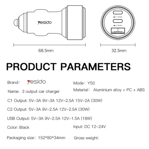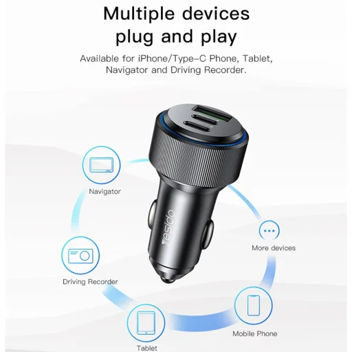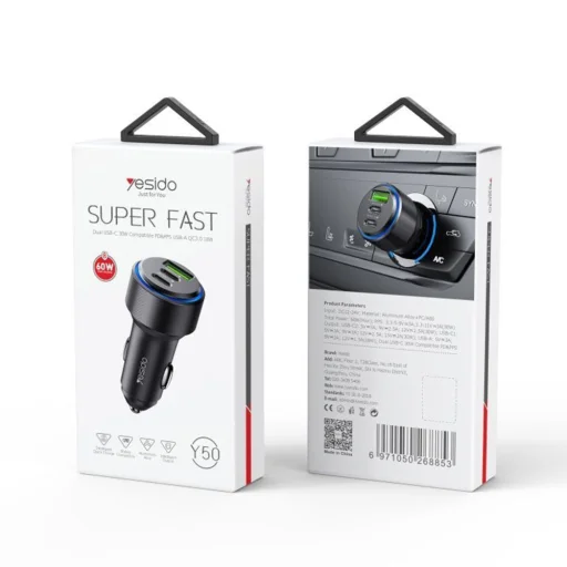 A Yesido Y50 autós töltővel a modern technológia és a megbízhatóság találkozik. Szerezze be most, és élvezze a gyors és biztonságos töltést minden utazása során!