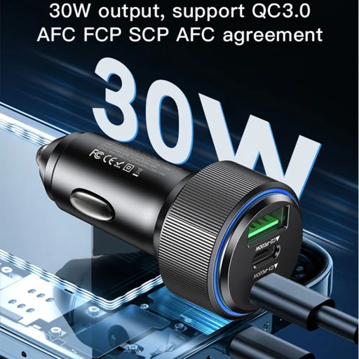 Keres egy megbízható és nagy teljesítményű autós töltőt, ami lépést tart a modern életmódjával? A Yesido Y50 autós töltő a tökéletes választás! Elegáns, fekete színével és prémium anyaghasználatával nemcsak jól néz ki, hanem kivételes funkcionalitást is kínál, hogy eszközei mindig feltöltve legyenek, bárhová is vezessen az út.