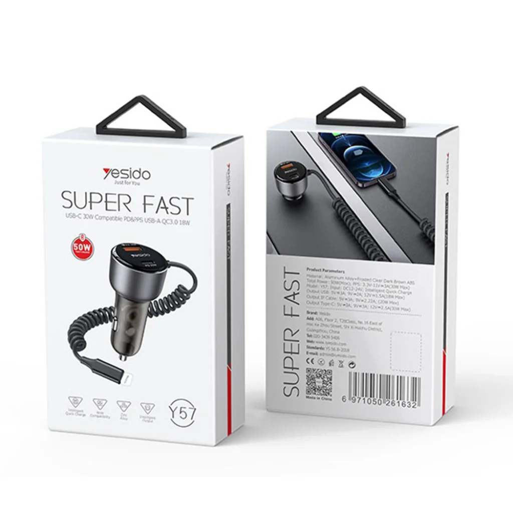 Válassza a Yesido Y57 autós töltőt, és élvezze a gondtalan, gyors töltést minden utazás során!