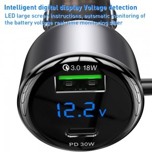 • Intelligens digitális kijelző és feszültségérzékelés: Az átlátszó LED kijelző valós időben mutatja az autó akkumulátorának feszültségét (pl. 12.2V), így mindig képben lehet annak állapotával. Ez a funkció növeli a biztonságot és segít megelőzni az esetleges problémákat.