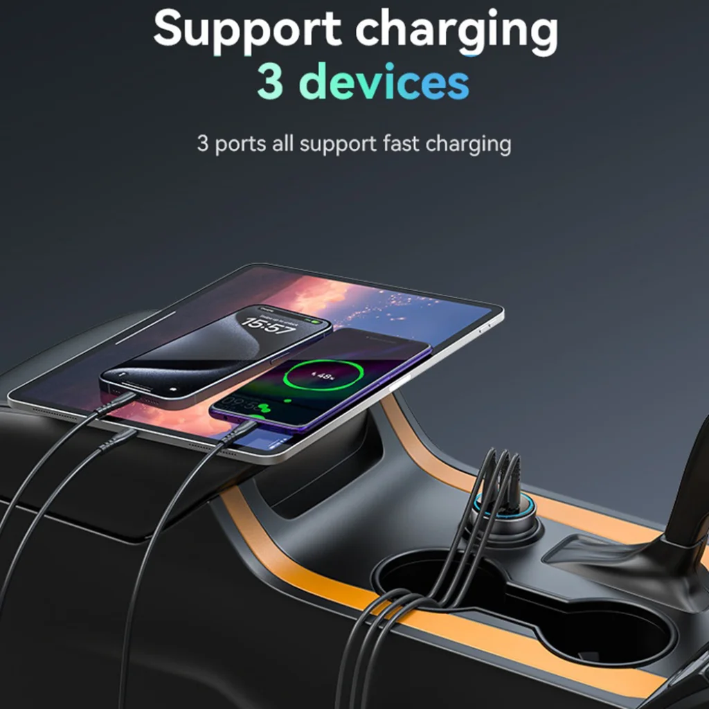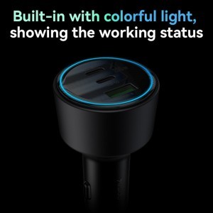 - Beépített színes LED világítás: Az elegáns, színes LED fény nemcsak stílusos kiegészítője az autó belső terének, hanem azonnal jelzi a töltő működési állapotát is, így mindig tudhatja, hogy eszközei töltés alatt állnak-e.