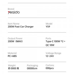 A Yesido Y59 autós töltővel soha többé nem kell aggódnia amiatt, hogy eszközei lemerülnek utazás közben. Ez a prémium minőségű, 200W-os autós töltő a legmodernebb technológiával készült, hogy gyors, biztonságos és hatékony töltést biztosítson minden eszközének, legyen szó okostelefonról, tabletről vagy akár laptopról.