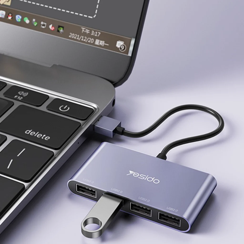 Yesido HB12 4-az-1 USB 2.0 elosztó – Bővítse csatlakozási lehetőségeit