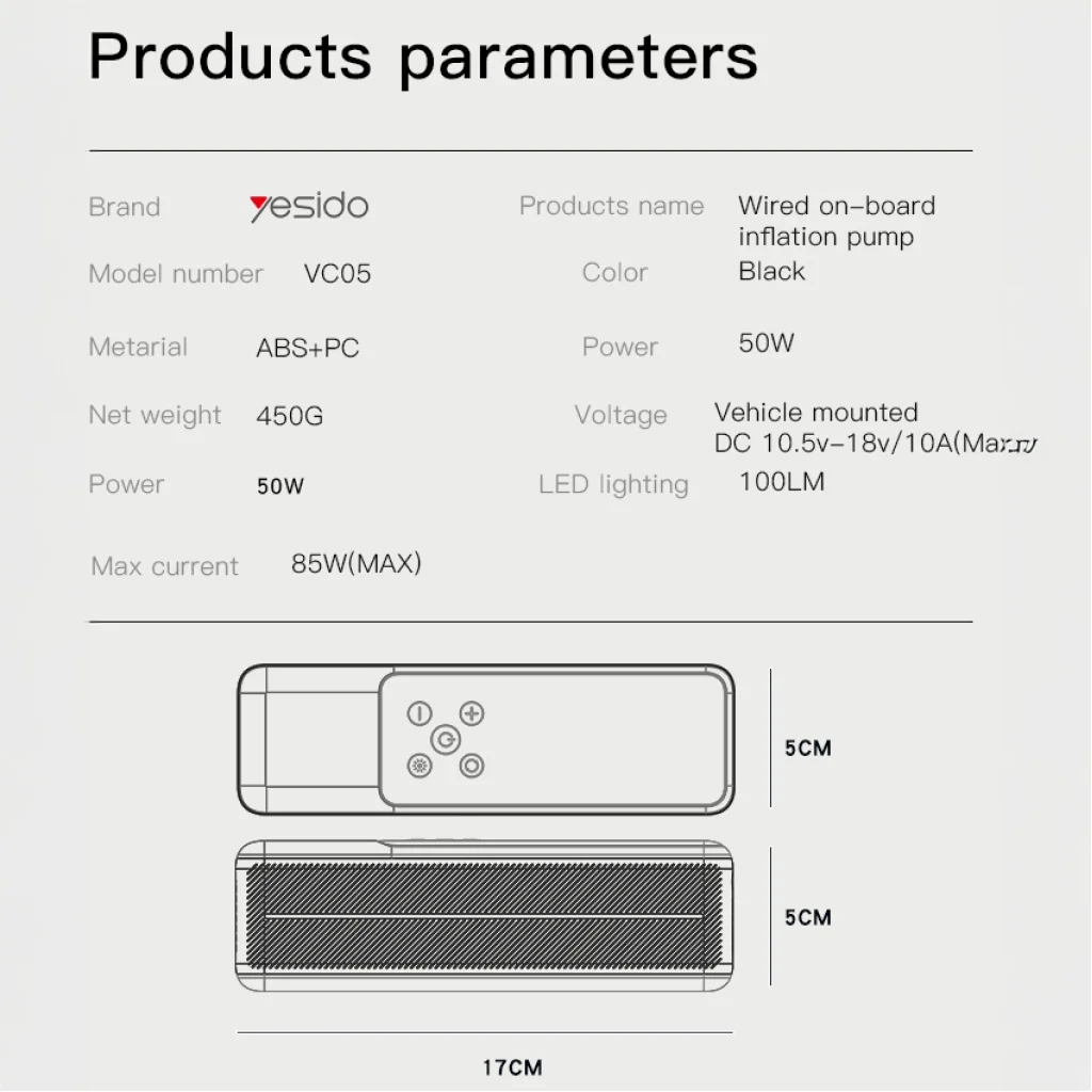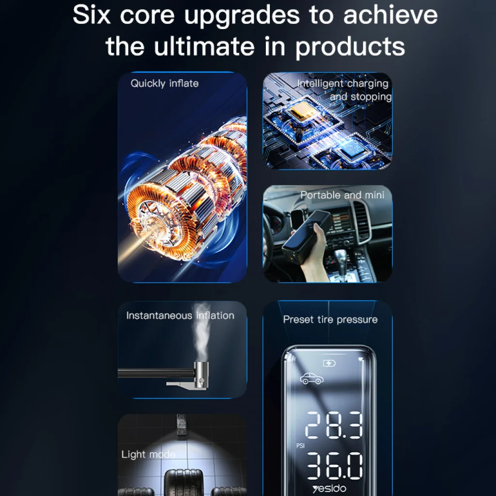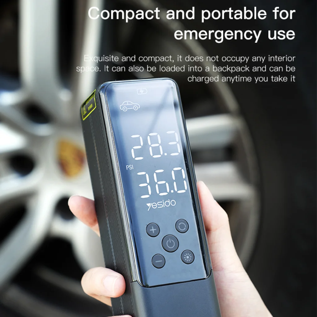 A Yesido VC05 mini légkompresszor a modern technológia, a kényelem és a megbízhatóság tökéletes ötvözete, amely nélkülözhetetlen kiegészítője lesz autójának és utazásainak.