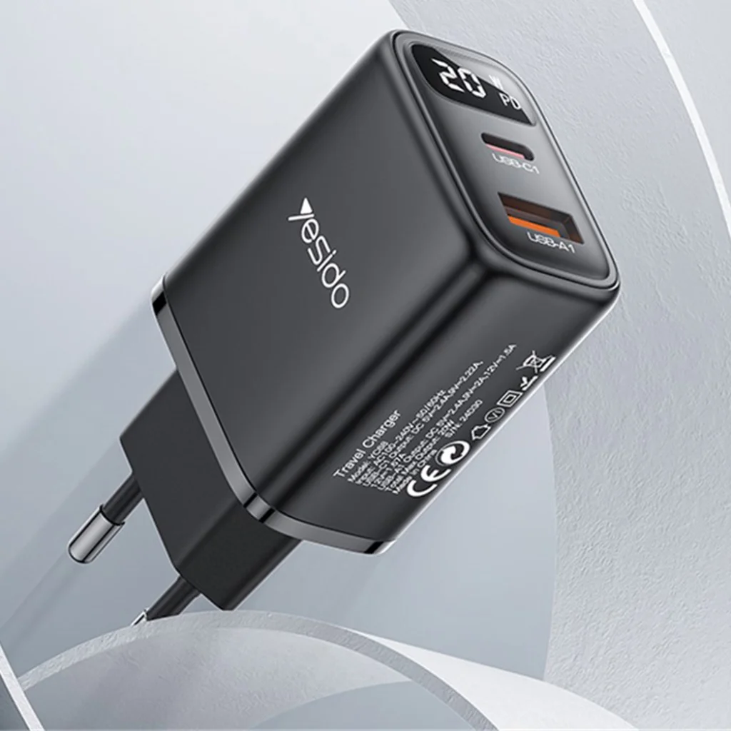 A Yesido YC68 töltő a legújabb technológiával készült, hogy készülékeid a lehető leggyorsabban töltsenek fel. A 20W-os Power Delivery (PD) technológiának köszönhetően pillanatok alatt visszatérhet az élet a lemerült telefonodba vagy tabletedbe. Ráadásul az integrált digitális kijelző folyamatosan mutatja a kimeneti teljesítményt, így pontosan tudhatod, mennyi energiát kap éppen az eszközöd.
