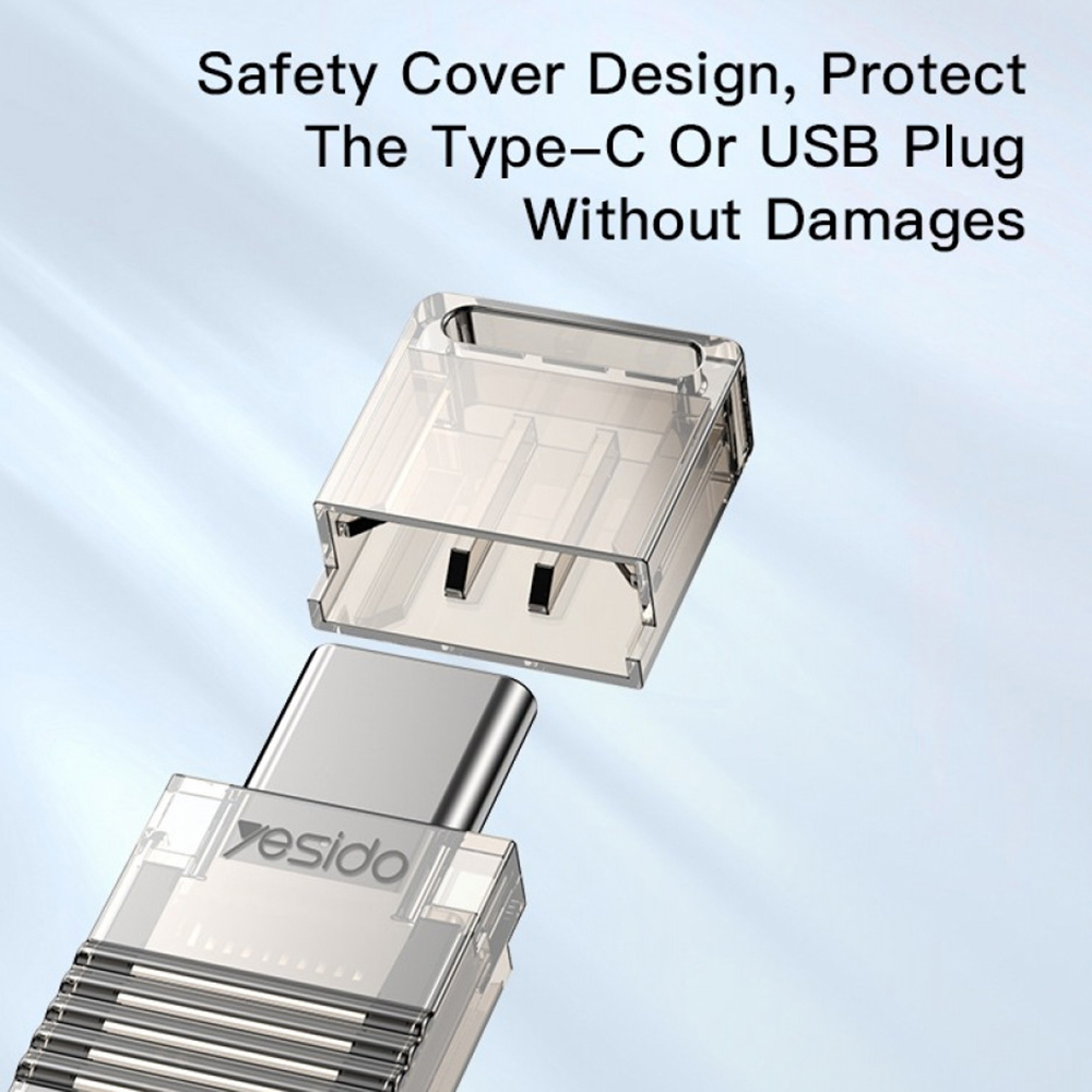 - Védőkupak: Tartós, átlátszó védőkupak védi az USB-A és Type-C csatlakozókat a sérülésektől és portól.