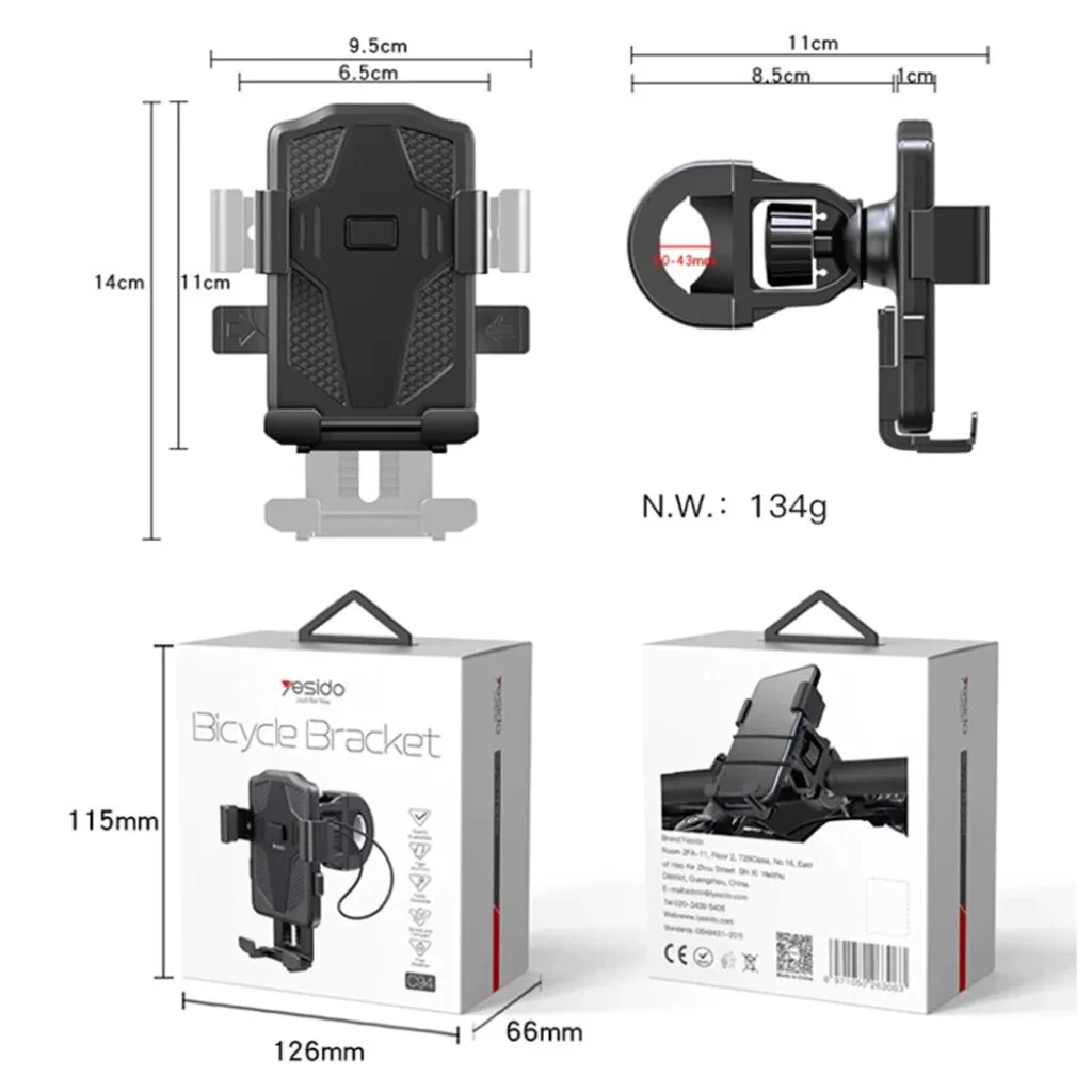 Fedezze fel a Yesido C94 kerékpártartót, amely tökéletes társ motoros, elektromos kerékpáros vagy kerékpáros kalandjaihoz. Ez a robusztus és felhasználóbarát tartó garantálja, hogy telefonja stabilan és biztonságosan maradjon a helyén, bármilyen úton is jár.