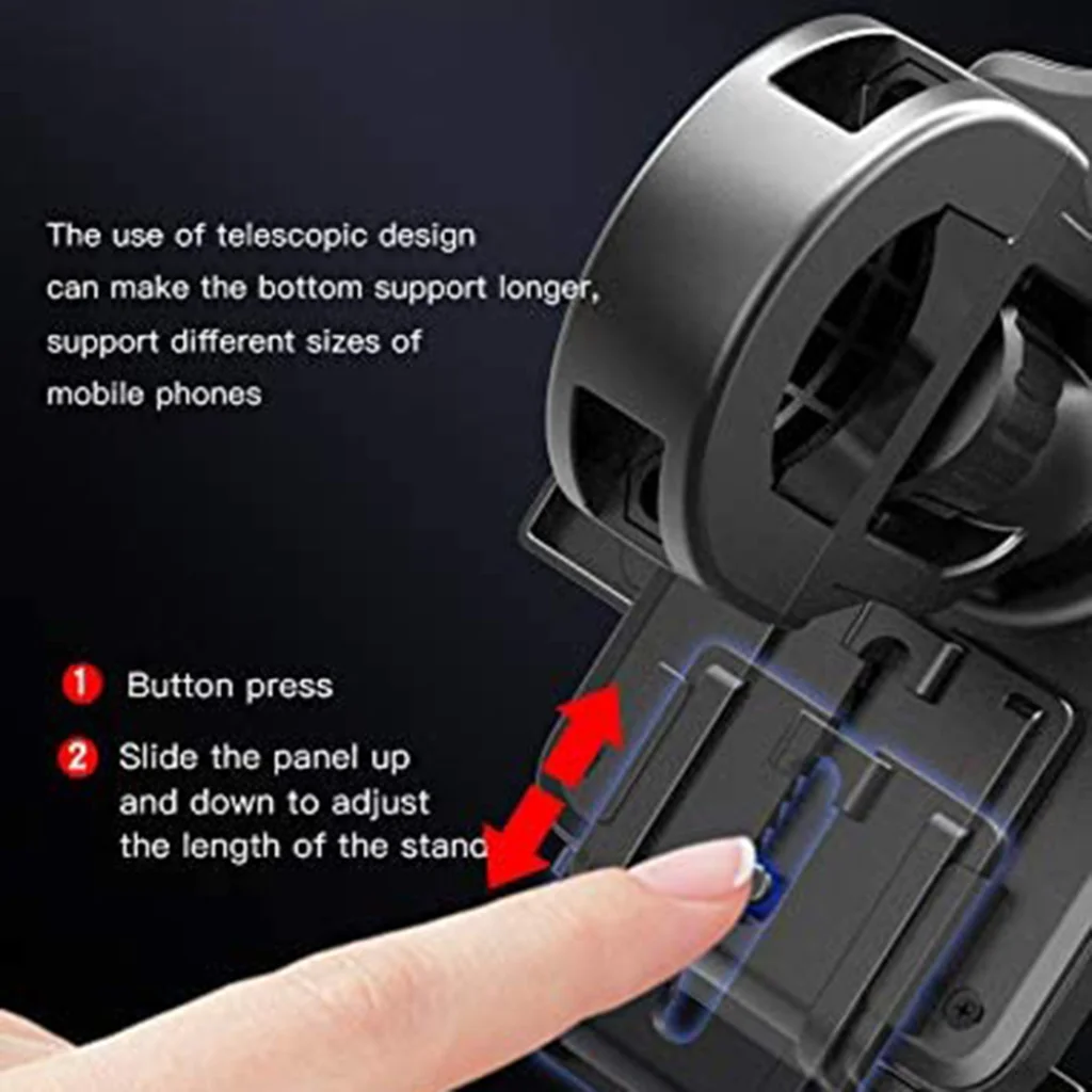 - Teleszkópos alsó támasz: Az állítható alsó támasz lehetővé teszi a tartó hosszának testreszabását, így különböző méretű mobiltelefonok is biztonságosan rögzíthetők. Egyszerűen nyomja meg a gombot, és csúsztassa fel vagy le a panelt a kívánt hossz beállításához.