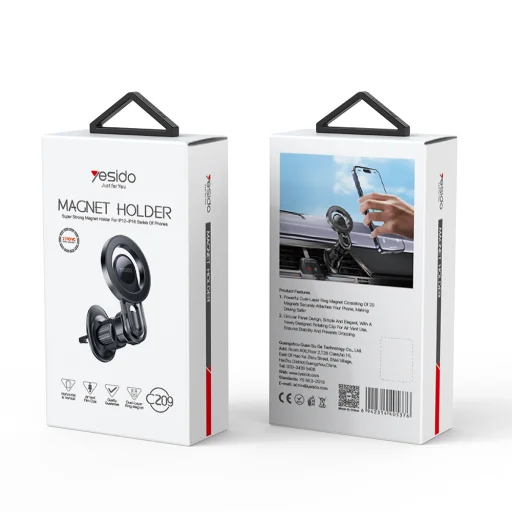A Yesido C209 mágneses autós tartó a tökéletes megoldás azoknak, akik páratlan stabilitást, eleganciát és funkcionalitást keresnek telefonjuk autós rögzítéséhez. Fekete színben, modern megjelenéssel és MagSafe kompatibilitással, ez a tartó nem csupán egy eszköz, hanem egy stílusos kiegészítő, amely garantálja a telefonod biztonságos és kényelmes használatát vezetés közben.