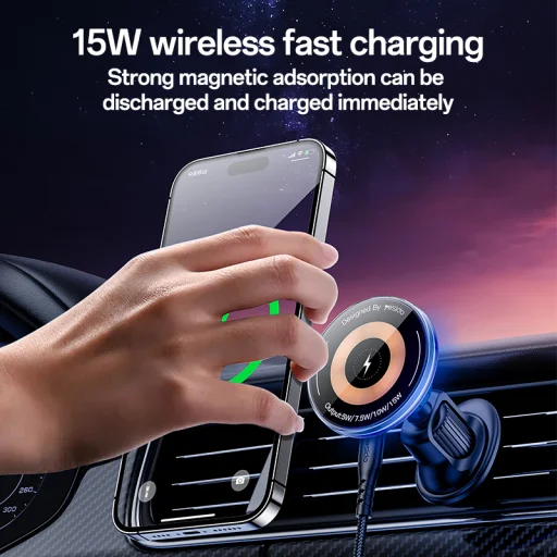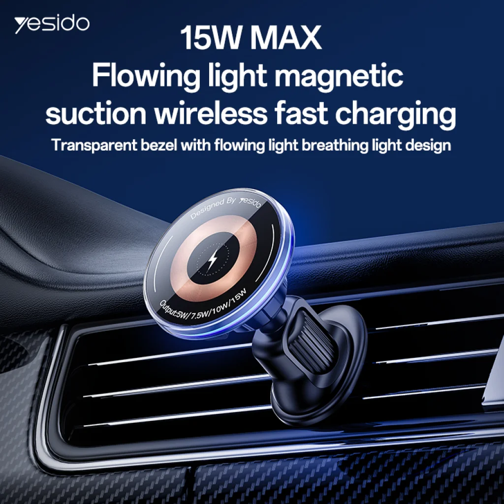 Yesido mágneses autós telefontartó C308 indukciós 15W levegő befúvóra fekete