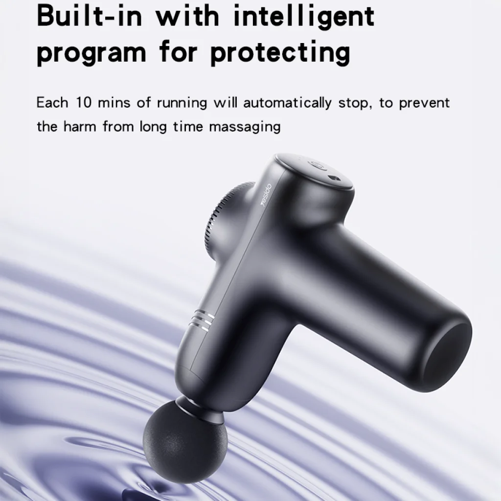 Az MG01 masszázspisztoly beépített intelligens programmal rendelkezik, amely védi az izmokat a túlzott masszázstól. Minden 10 percnyi működés után a készülék automatikusan kikapcsol, megelőzve ezzel a hosszan tartó masszázs okozta esetleges károkat vagy kellemetlenségeket. Így nyugodtan élvezheti a terápiás hatásokat.