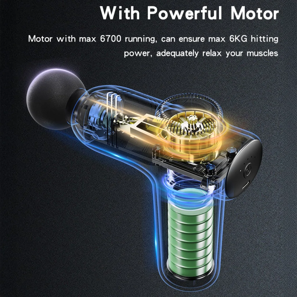 A Yesido MG01 egy nagy teljesítményű, maximum 6700 fordulatszámú motorral van felszerelve, amely akár 6 kg-os ütéserőt is képes kifejteni. Ez a mélyreható perkussziós masszázs hatékonyan lazítja el az izmokat, enyhíti a fájdalmat és serkenti a vérkeringést. Az 5 választható sebességfokozatnak köszönhetően könnyedén megtalálhatja az Ön számára legmegfelelőbb intenzitást, a gyengéd lazítástól az intenzív izomstimulációig.