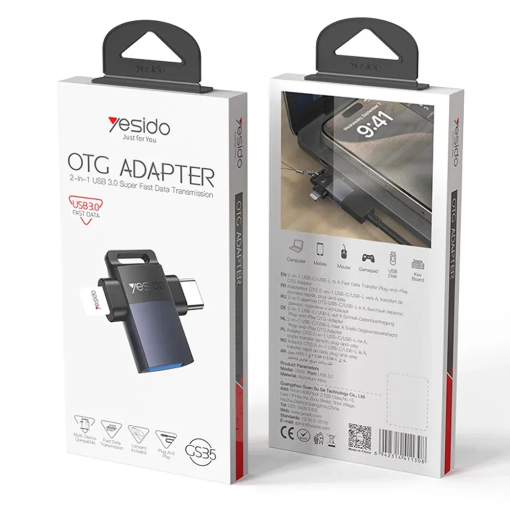 Yesido OTG Adapter (GS35) USB3.0 Lightning, Type-C, Alumínium Ötvözet, Mini Dizájn - Szürke