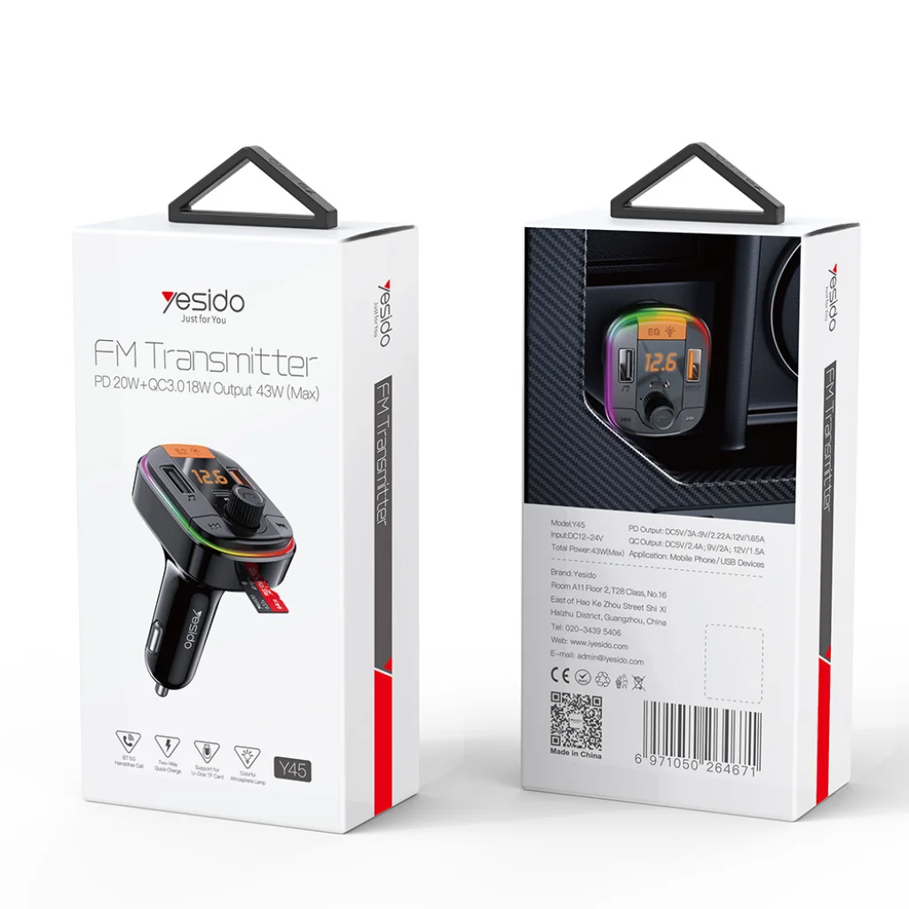 A Yesido Y45 transzmitterrel sosem kell lemondania kedvenc zenéiről az úton. A Bluetooth 5.0 stabil és gyors kapcsolatot biztosít okostelefonjával a megszakításmentes zeneátvitelhez és hívásokhoz. Emellett az USB-meghajtó és a microSD kártya foglalatok széleskörű kompatibilitást nyújtanak, lehetővé téve, hogy közvetlenül ezekről a forrásokról játssza le zenéit.
