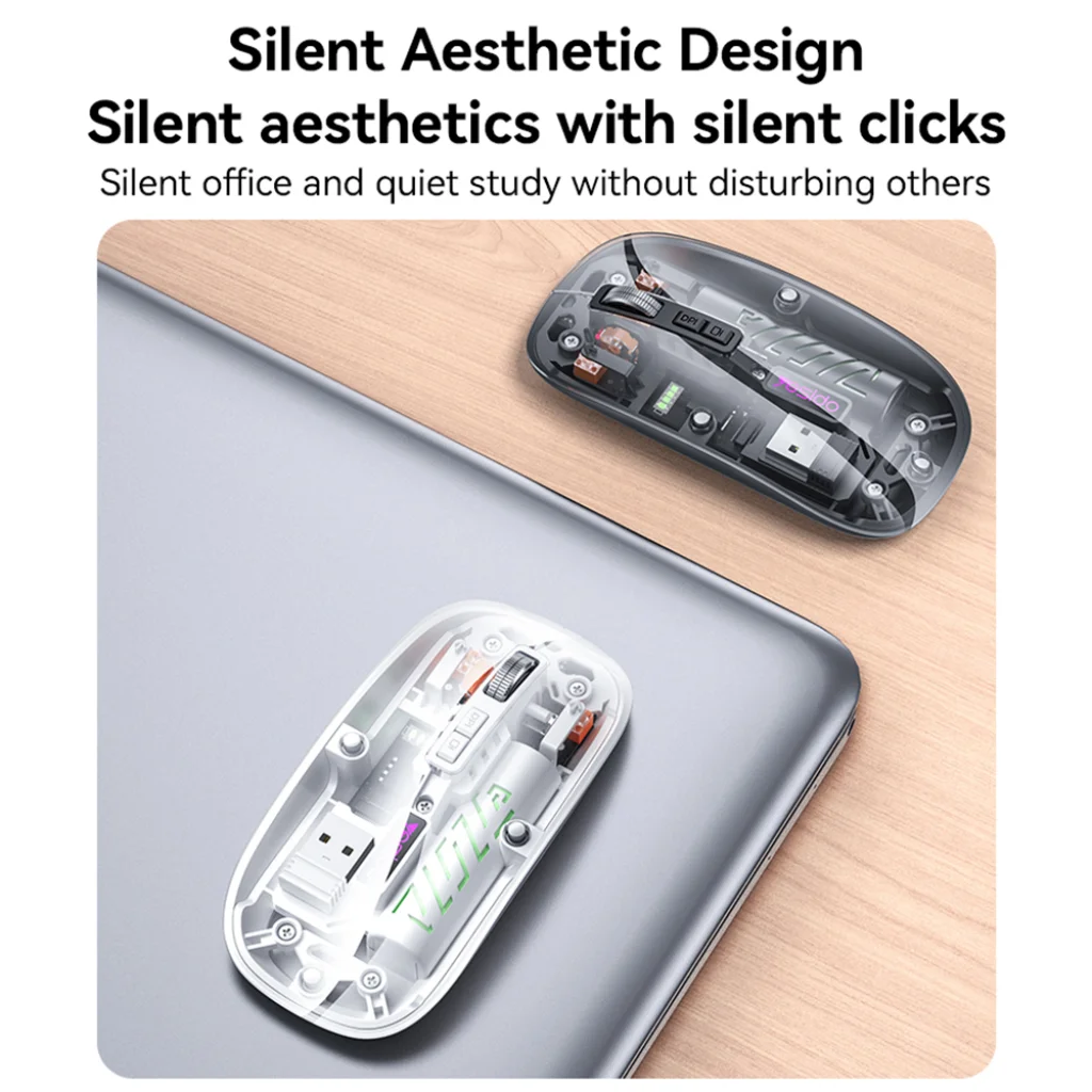 Fedezze fel a Yesido KB29 vezeték nélküli egeret, amely a modern esztétikát, a sokoldalú funkcionalitást és az extrém csendes működést ötvözi. Ez a stílusos, átlátszó kivitelű egér ideális választás mindazok számára, akik a letisztult design mellett a megbízható teljesítményt és a zavartalan munkavégzést értékelik.