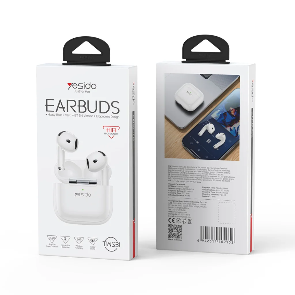 Fedezze fel a Yesido TWS31 vezeték nélküli fülhallgatót, amely ötvözi a stílusos, ergonomikus kialakítást a kiváló hangminőséggel és a modern technológiákkal. Ez a fél-fülbe illeszkedő, fehér színű fülhallgató tökéletes választás a mindennapokra, legyen szó zenehallgatásról, telefonálásról vagy játékról.
