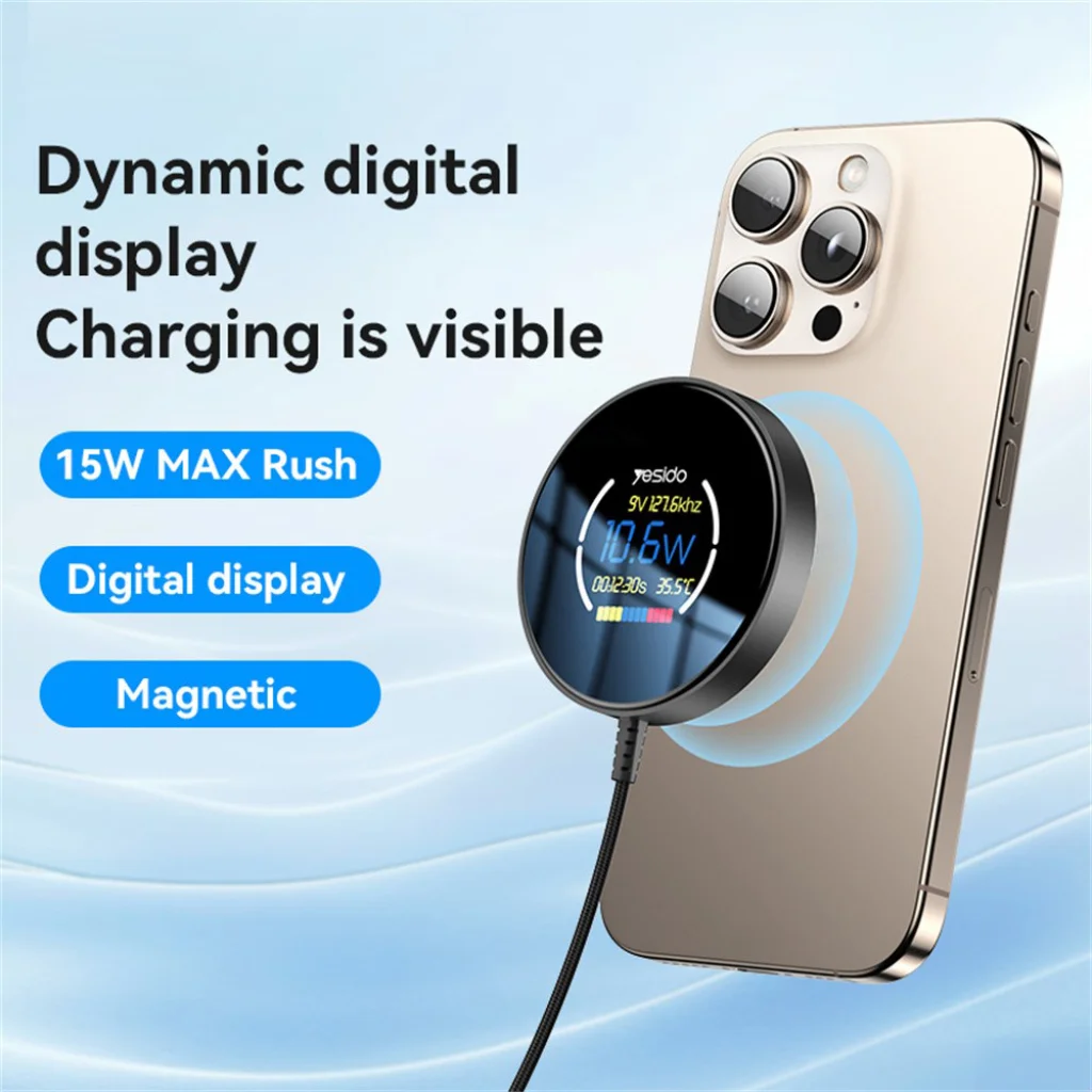 Fedezze fel a Yesido DS28 Vezeték nélküli Töltőállomást, amely a modern technológia és az elegáns design tökéletes ötvözete. Ez az intelligens töltőállomás nem csupán gyors és hatékony, hanem valós idejű információval is szolgál, miközben a mágneses rögzítésnek köszönhetően stabilan tartja készülékét.